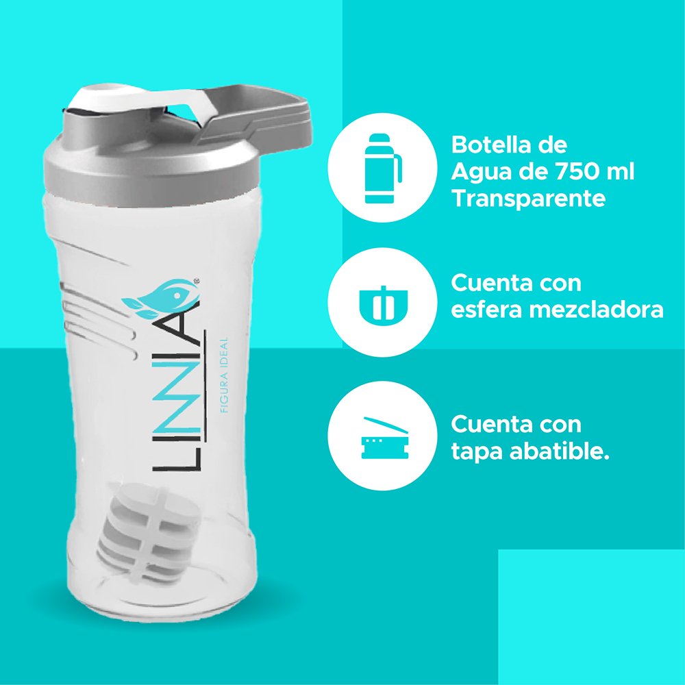 Botella de Agua de 750 ml Transparente cuenta con esfera mezcladora te permitirá preparar tus batidos fácilmente.